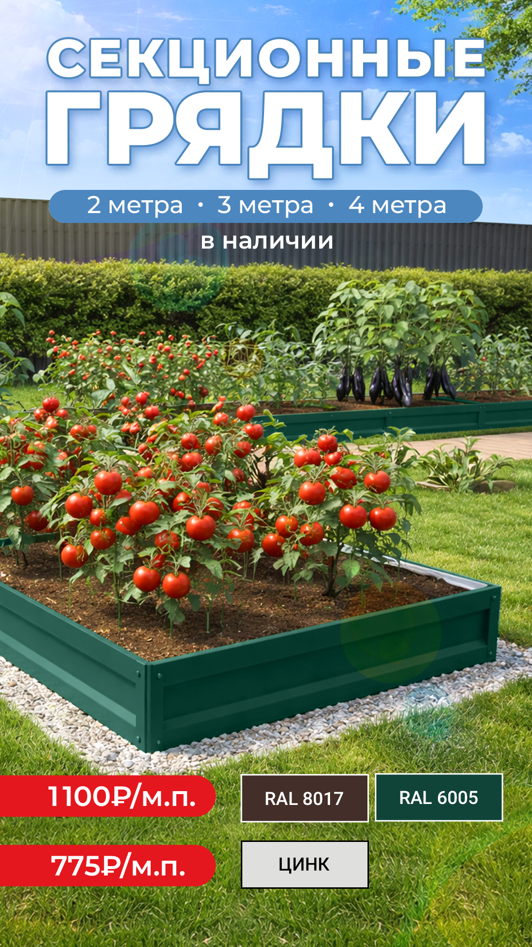 Акция! Секционные грядки в наличии! Длина — 2 - 3 - 4 метра.